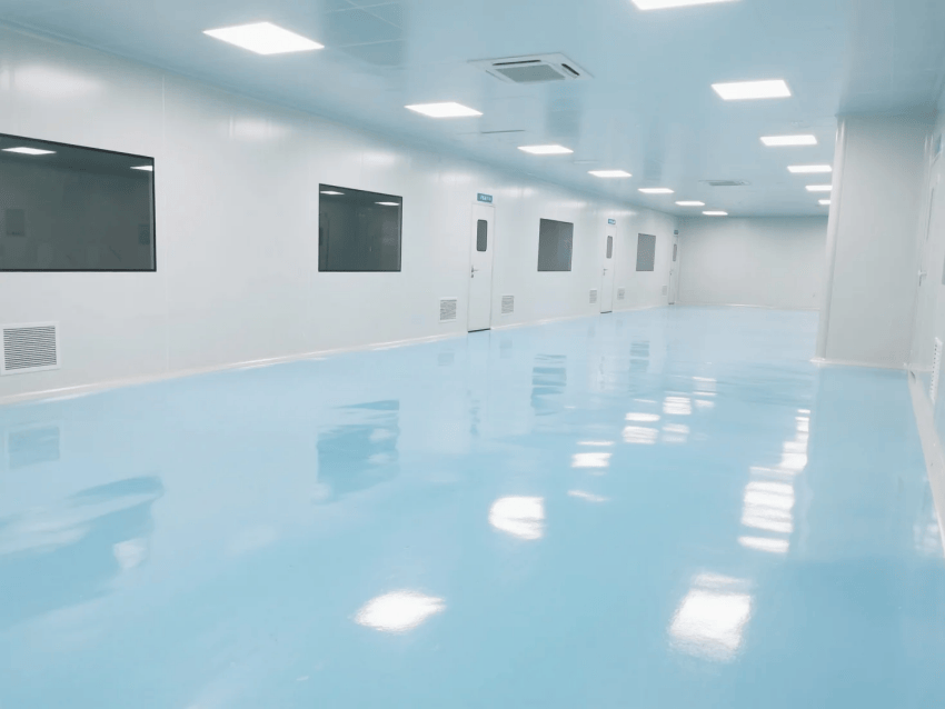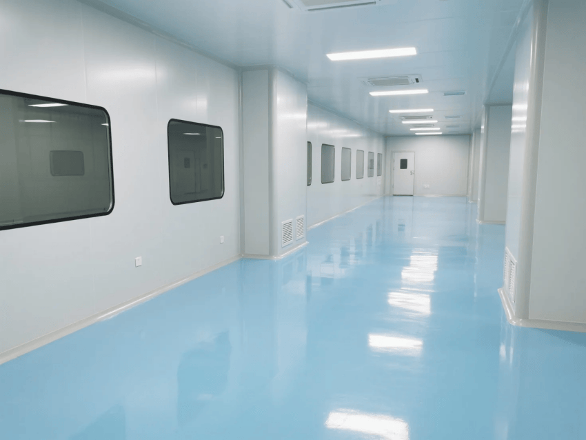 本方案依據(jù)ISO14644-1Class7(萬級)潔凈標(biāo)準(zhǔn)設(shè)計,采用淺藍(lán)色彩鋼板與啞光白環(huán)氧樹脂墻面構(gòu)成主視覺系統(tǒng),營造科技感與潔凈度并重的生產(chǎn)環(huán)境。圍護(hù)結(jié)構(gòu)選用50mm厚雙面不銹鋼復(fù)合板,所有陰陽角均采用R50mm圓弧過渡處理,確保無衛(wèi)生死角。