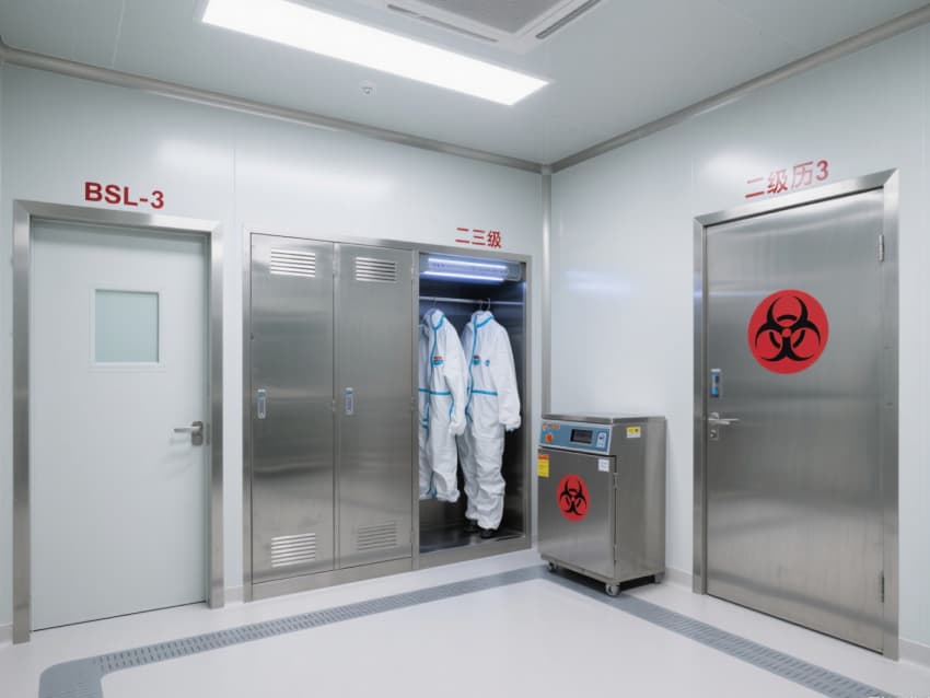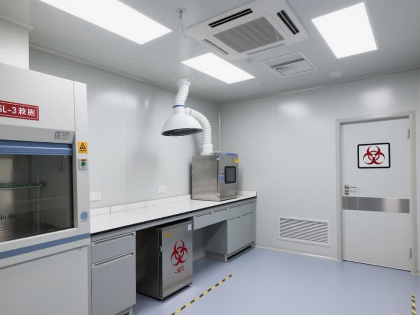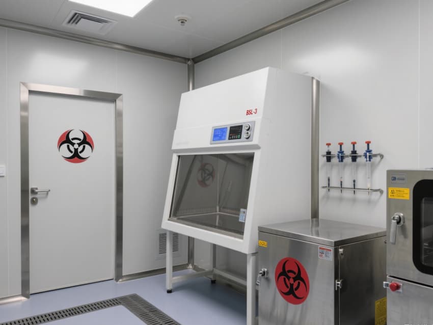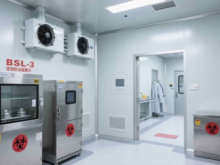 實驗室核心區(qū)域配備負(fù)壓生物安全柜、雙扉高壓滅菌器,確保微生物操作與廢棄物處理安全;頂部高效空氣過濾器(HEPA)實現(xiàn)每小時15-20次空氣置換,尾氣經(jīng)消毒處理后排放,避免氣溶膠擴散。互鎖式潔凈門、雙層鋼化玻璃觀察窗與應(yīng)急噴淋裝置,形成全流程安全保障。?