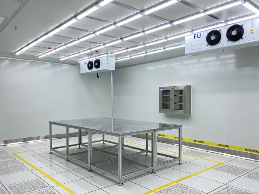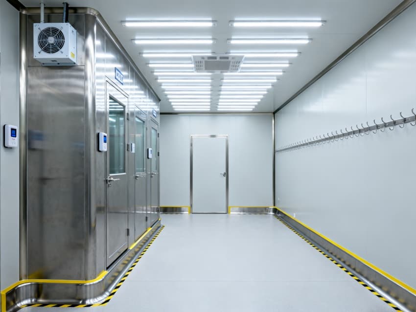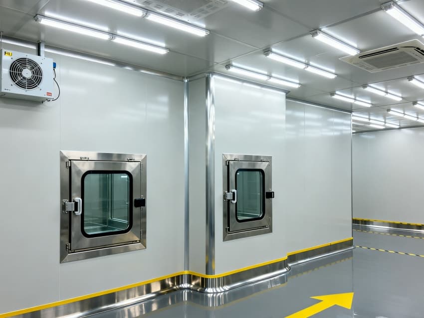 內部按芯片工藝流程劃分光刻輔助區(qū)、晶圓預處理區(qū)、封裝過渡區(qū)等,各區(qū)域通過無塵傳遞艙銜接。車間嚴格執(zhí)行萬級潔凈標準(ISO8級),每立方米空氣中≥0.5μm微粒數(shù)≤352000個,采用初效-中效-高效-化學過濾四級凈化系統(tǒng),配合垂直層流送風,每小時空氣置換25-30次。墻面為防靜電不銹鋼板,地面是環(huán)氧樹脂自流平材質,溫度穩(wěn)定在23±1℃、濕度45±3%RH,同時配備靜電消除裝置,避免微粒與靜電影響芯片良率,完全契合芯片生產嚴苛要求。