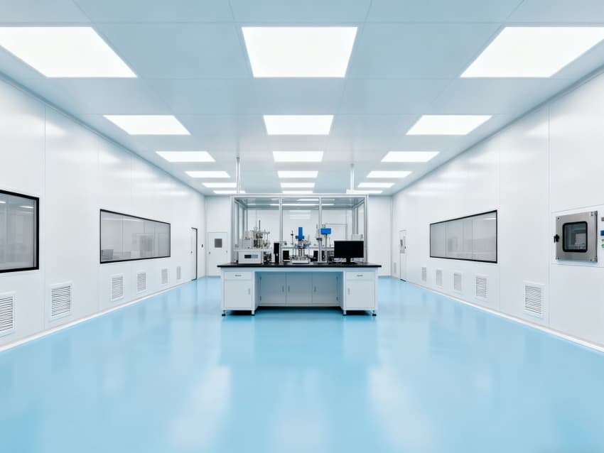 車(chē)間環(huán)境控制優(yōu)勢(shì)顯著:地面采用淺藍(lán)色防靜電環(huán)氧材質(zhì),有效規(guī)避靜電對(duì)量子元件的干擾;四周白色抗菌墻面經(jīng)特殊涂層處理,粉塵附著率低于0.1%,配合全密封吊頂設(shè)計(jì),可維持千級(jí)潔凈度,滿(mǎn)足量子器件對(duì)微環(huán)境的極高要求。?