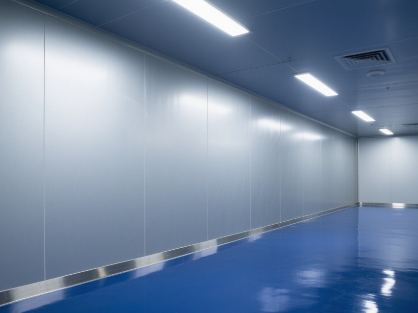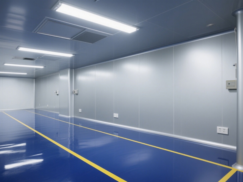 材料選擇是潔凈性能的基礎。地面選用防靜電環氧自流平,其無縫隙、高耐磨的特性,既能防止靜電擊穿電子元件,又便于日常清潔消毒;墻面采用彩鋼板,拼接處用硅酮密封膠嚴密填充,確保氣密性,且板材需具備抗菌性能,適配醫藥廠房的衛生要求;吊頂采用鋁合金龍骨搭配防塵石膏板,嵌入式安裝潔凈燈具與風口,減少積塵死角。此外,門窗需選用斷橋鋁材質,配備雙層中空鋼化玻璃與密封膠條,阻斷外界灰塵與異味進入。?