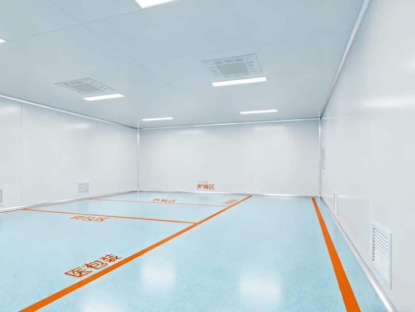 車間整體風(fēng)格潔凈統(tǒng)一,地面采用淺藍(lán)色耐腐抗菌環(huán)氧材質(zhì),無(wú)縫拼接工藝杜絕衛(wèi)生死角,耐消毒藥劑侵蝕且易清潔;四周白色抗菌墻壁經(jīng)納米涂層處理,粉塵附著率極低,配合頂部高效空氣過(guò)濾系統(tǒng),穩(wěn)定維持萬(wàn)級(jí)潔凈度,契合醫(yī)藥用品生產(chǎn)對(duì)無(wú)菌環(huán)境的嚴(yán)苛要求。
