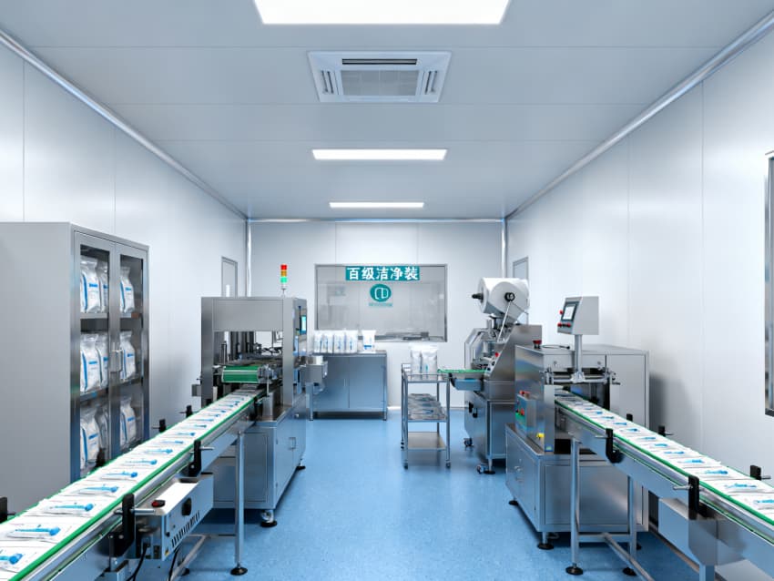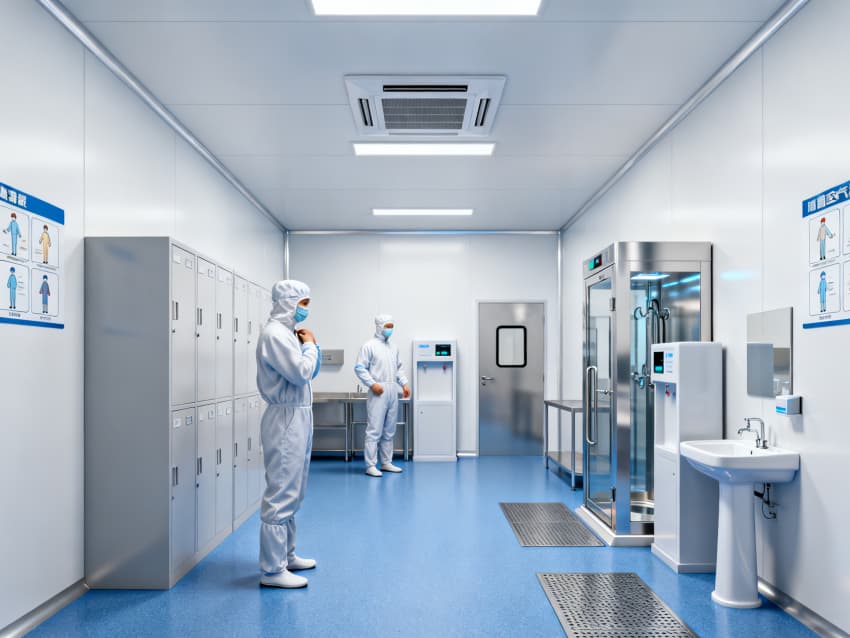 凈化配套設(shè)計(jì)全面:藍(lán)色地面具備抗菌、易消殺特性,配合地面導(dǎo)坡設(shè)計(jì)加速清潔排水,減少污漬殘留;白色墻面采用無縫抗菌涂層,消除清潔死角,降低微生物附著風(fēng)險(xiǎn);全車間劃分獨(dú)立凈化分區(qū),通過壓差控制預(yù)留設(shè)計(jì)隔絕不同潔凈等級(jí)區(qū)域,人流、物流通道分離避免交叉污染,全方位保障無菌生產(chǎn)環(huán)境穩(wěn)定達(dá)標(biāo)。