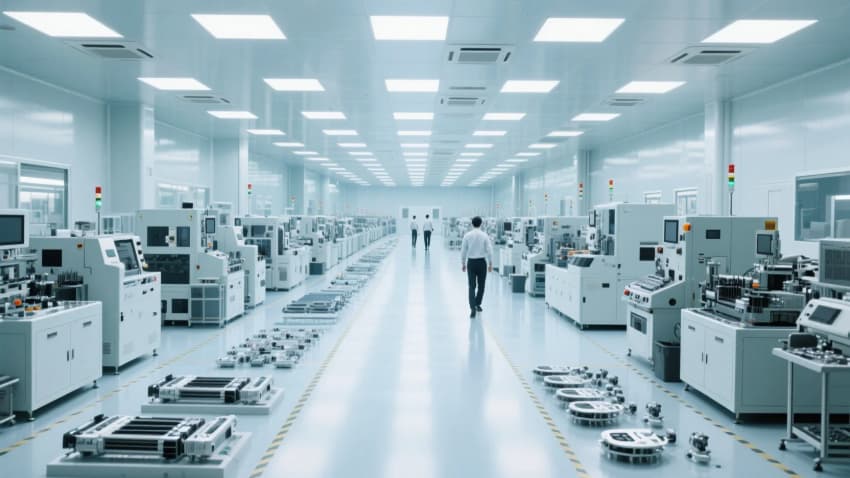 新能源無(wú)塵車(chē)間是一個(gè)高度專(zhuān)業(yè)化的生產(chǎn)環(huán)境,主要用于新能源產(chǎn)品的制造,例如鋰電池、太陽(yáng)能電池板等。 車(chē)間內(nèi)部整體呈銀灰色和藍(lán)色,給人一種現(xiàn)代感和科技感
