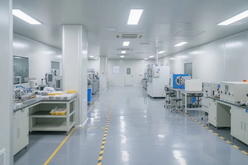 本工程嚴(yán)格遵循ISO14644-1Class7及GMP醫(yī)療器械生產(chǎn)規(guī)范,打造高標(biāo)準(zhǔn)的生物醫(yī)療器械制造環(huán)境。車(chē)間采用醫(yī)療級(jí)白色抗菌彩鋼板與淺藍(lán)防靜電環(huán)氧地坪的潔凈配色方