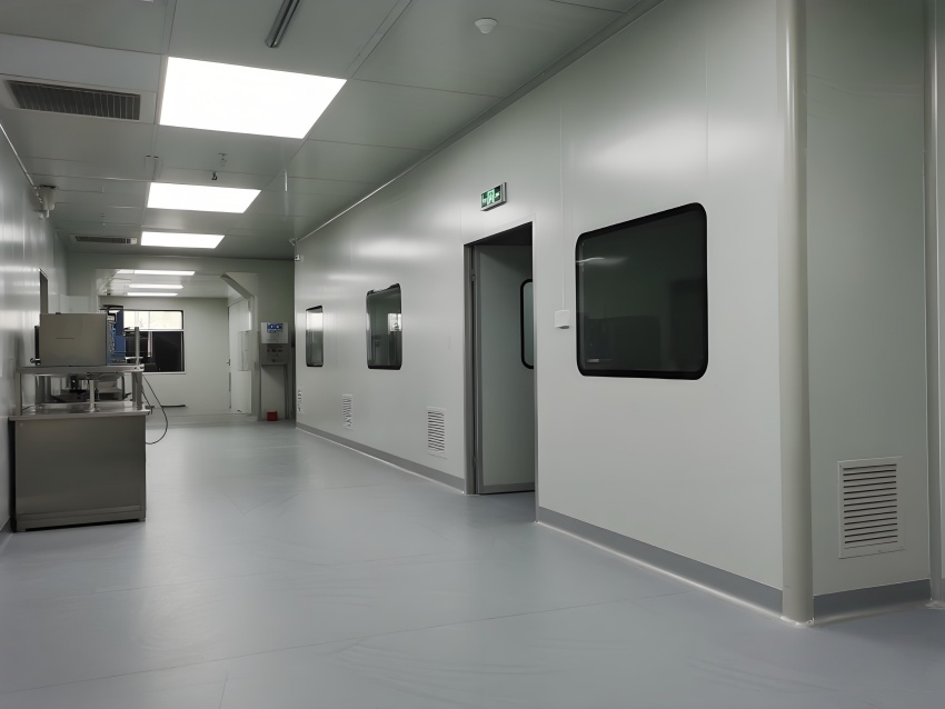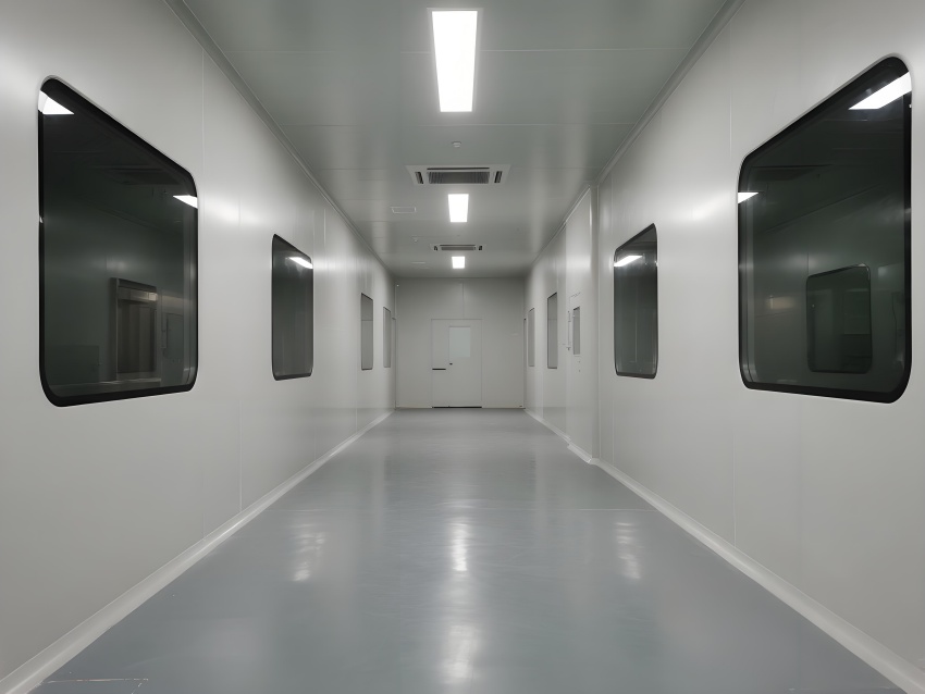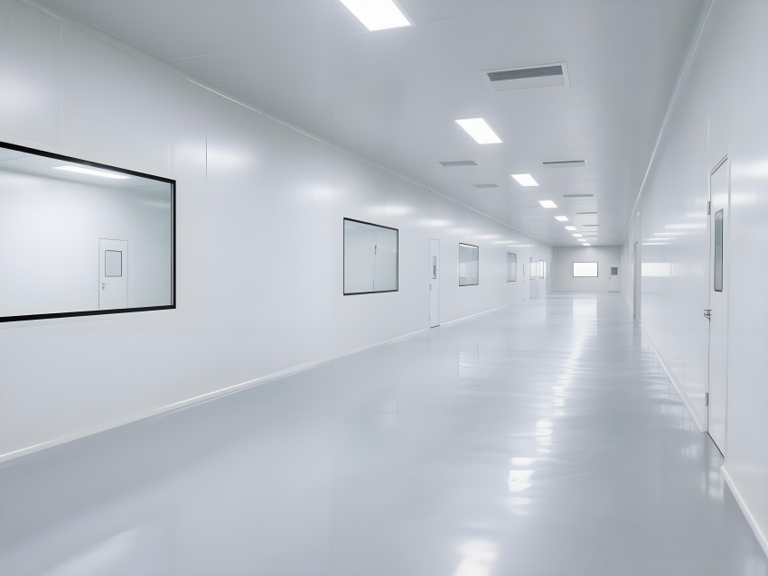 本凈化車(chē)間采用"科技極簡(jiǎn)主義"風(fēng)格,通過(guò)流暢的線(xiàn)性布局與模塊化設(shè)計(jì)強(qiáng)化專(zhuān)業(yè)感。主空間以珍珠白與淺灰為基調(diào),搭配天藍(lán)色送風(fēng)管道形成視覺(jué)引導(dǎo),環(huán)氧地坪的鏡面效果反射頂部藍(lán)色凈化燈帶,營(yíng)造無(wú)菌環(huán)境的通透感。設(shè)備區(qū)采用不銹鋼原色與玻璃觀(guān)察窗形成材質(zhì)碰撞,電子屏實(shí)時(shí)數(shù)據(jù)可視化增強(qiáng)科技屬性。嚴(yán)格的人貨分流設(shè)計(jì)通過(guò)色彩編碼實(shí)現(xiàn)功能識(shí)別,墻面嵌入式消防與應(yīng)急系統(tǒng)保持視覺(jué)平整。整體空間通過(guò)減少視覺(jué)噪點(diǎn)、強(qiáng)化功能分區(qū)線(xiàn)條,在滿(mǎn)足GMP動(dòng)態(tài)潔凈要求的同時(shí),呈現(xiàn)現(xiàn)代食品工業(yè)的精密與秩序之美,透明亞克力標(biāo)識(shí)牌與柔光照明進(jìn)一步減輕密閉空間的壓抑感。